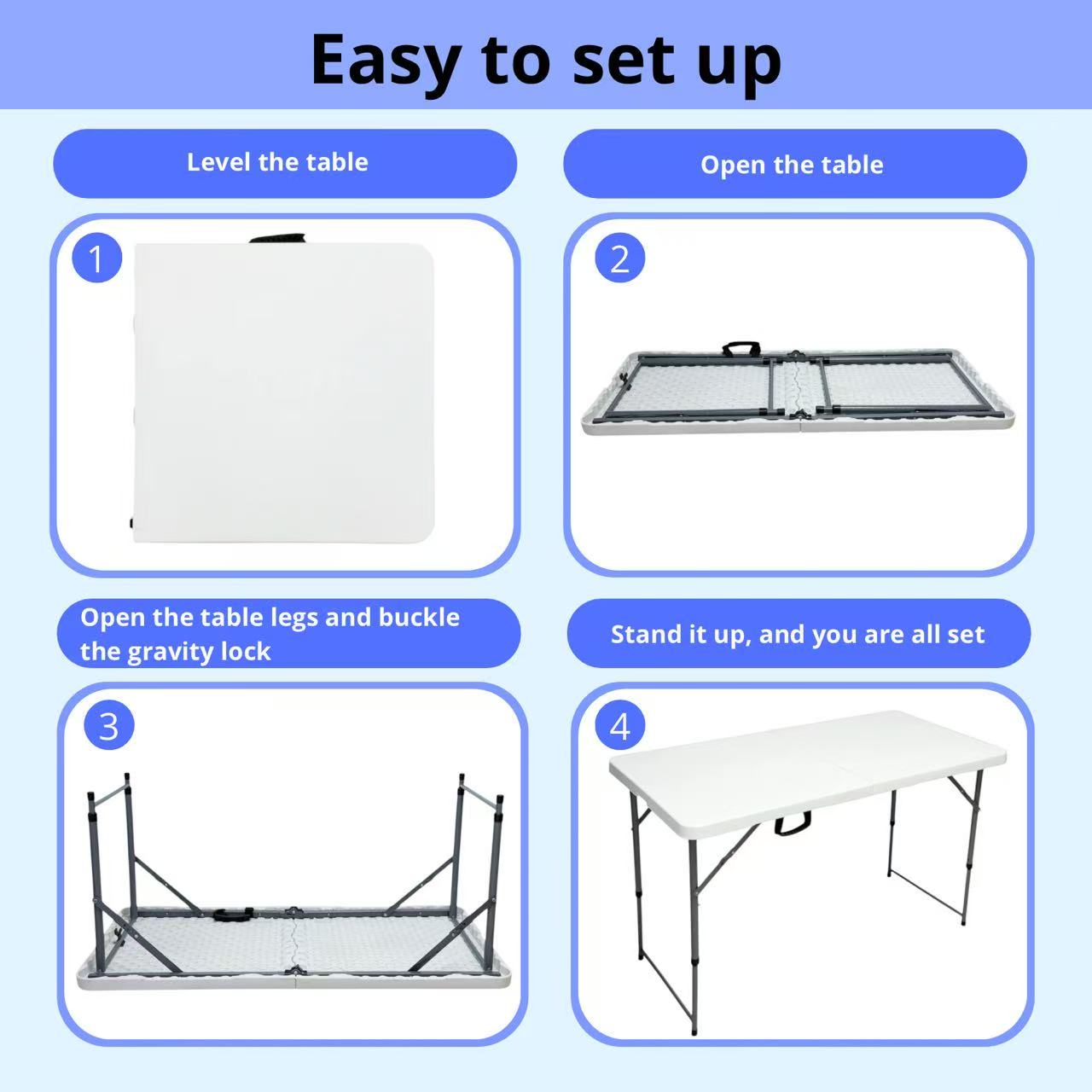 ☀️ 4ft Folding Table with Adjustable Height – Portable Picnic Table for BBQ, Camping, Home & Patio 🍉